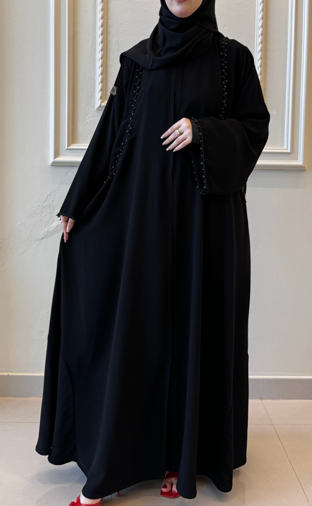 - عباية سوداء فاخرة بقماش ملكي فاخر