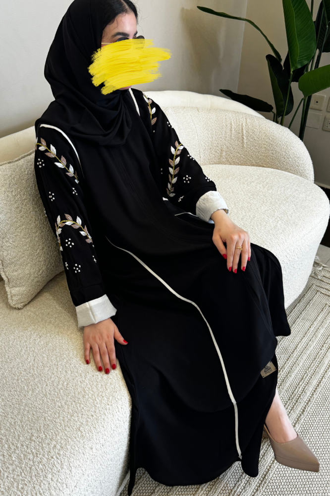 - نسیج فاخر : عبایتنا مطرزة و مصنوعة من قماش ملكي كوري اسود الذي یتمیز بكونه خفیف الوزن ، وله القدرة على الاحتفاظ بلونه وشكله مما يجعله رائع ومناسب جداً للعبایات