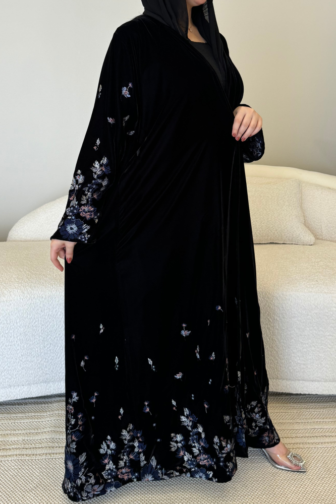 - نسیج فاخر : عبایتنا مطرزة و مصنوعة من قماش مخمل اسود الذي یتمیز بكونه خفیف الوزن ، وله القدرة على الاحتفاظ بلونه وشكله مما يجعله رائع ومناسب جداً للعبایات .