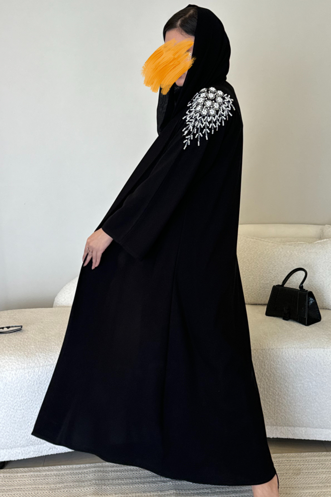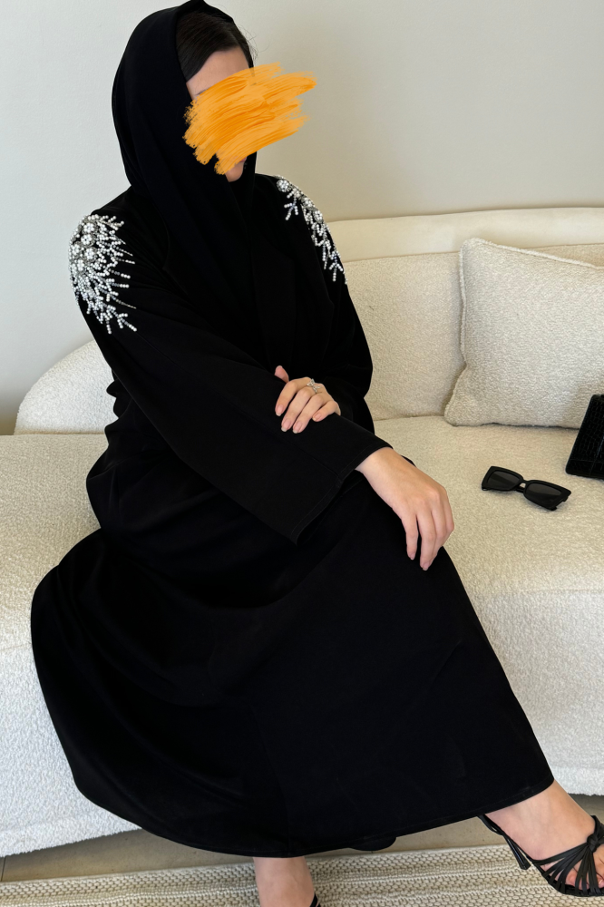 - عباية كريب انترنت يزينها شك فضي على الكتف منحها قدراً كبيراً من الأناقة والجاذبية.