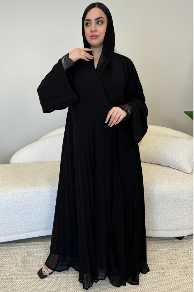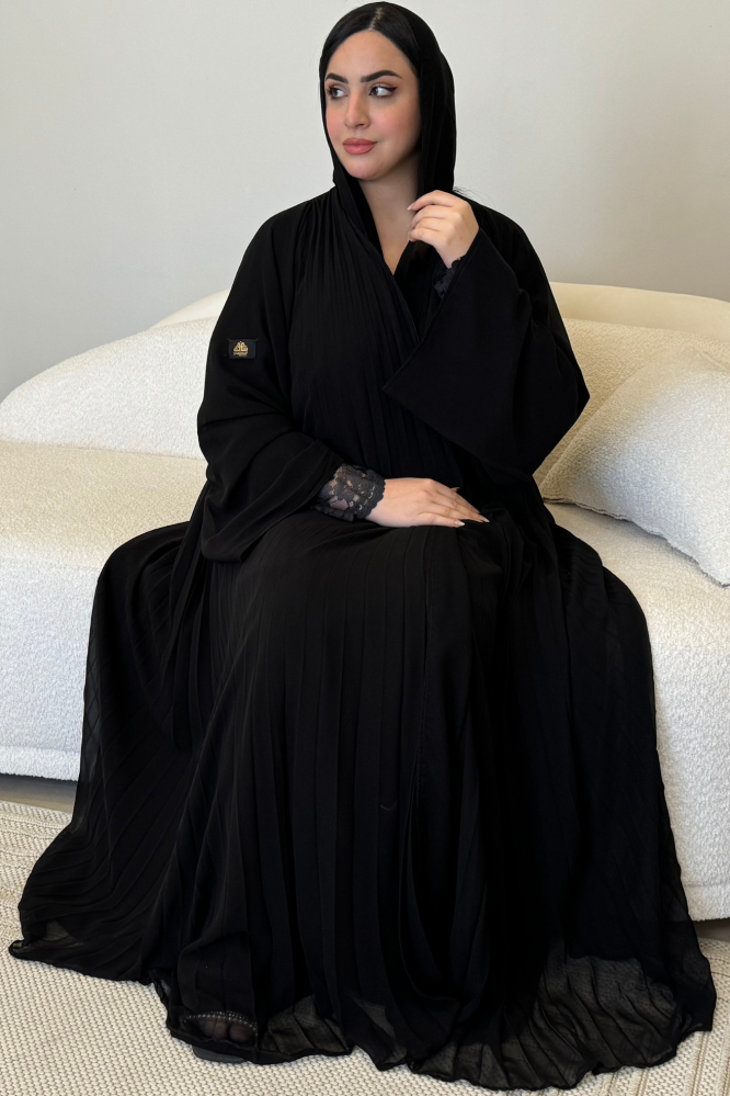 عباية كلوش كسرات طبقتين مع كم داخلي دانتيل أسود