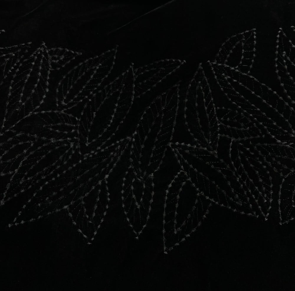 - عباية مخمل فاخر بقصة دبل كلوش مميزة مع اضافة تطريز أبيض أنيق تميزك بفصل الشتاء,